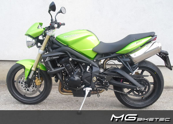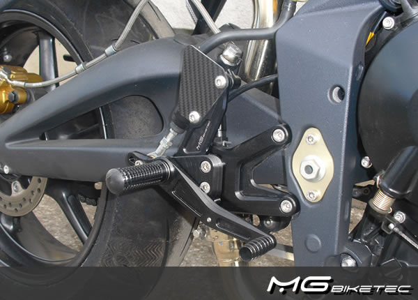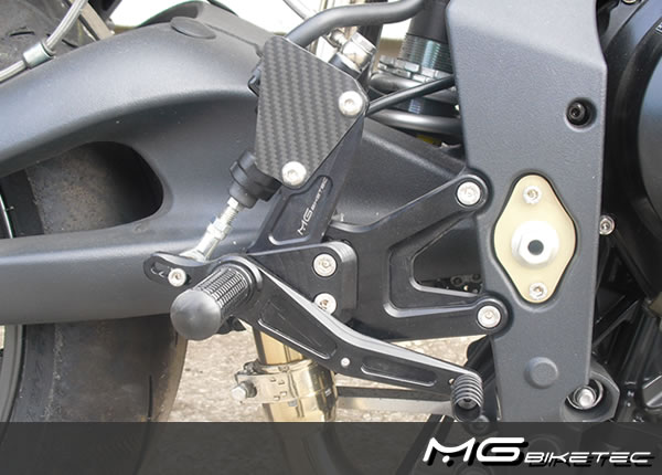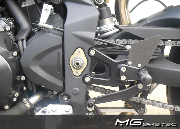 MG-Biketec Sportfußrastenanlage für Triumph Street Triple 675 2008-2012 & Triumph Street Triple 675 R 2008-2010, voll ergonomisch verstellbar in 9 Positionen und bis zu 20 mm.
